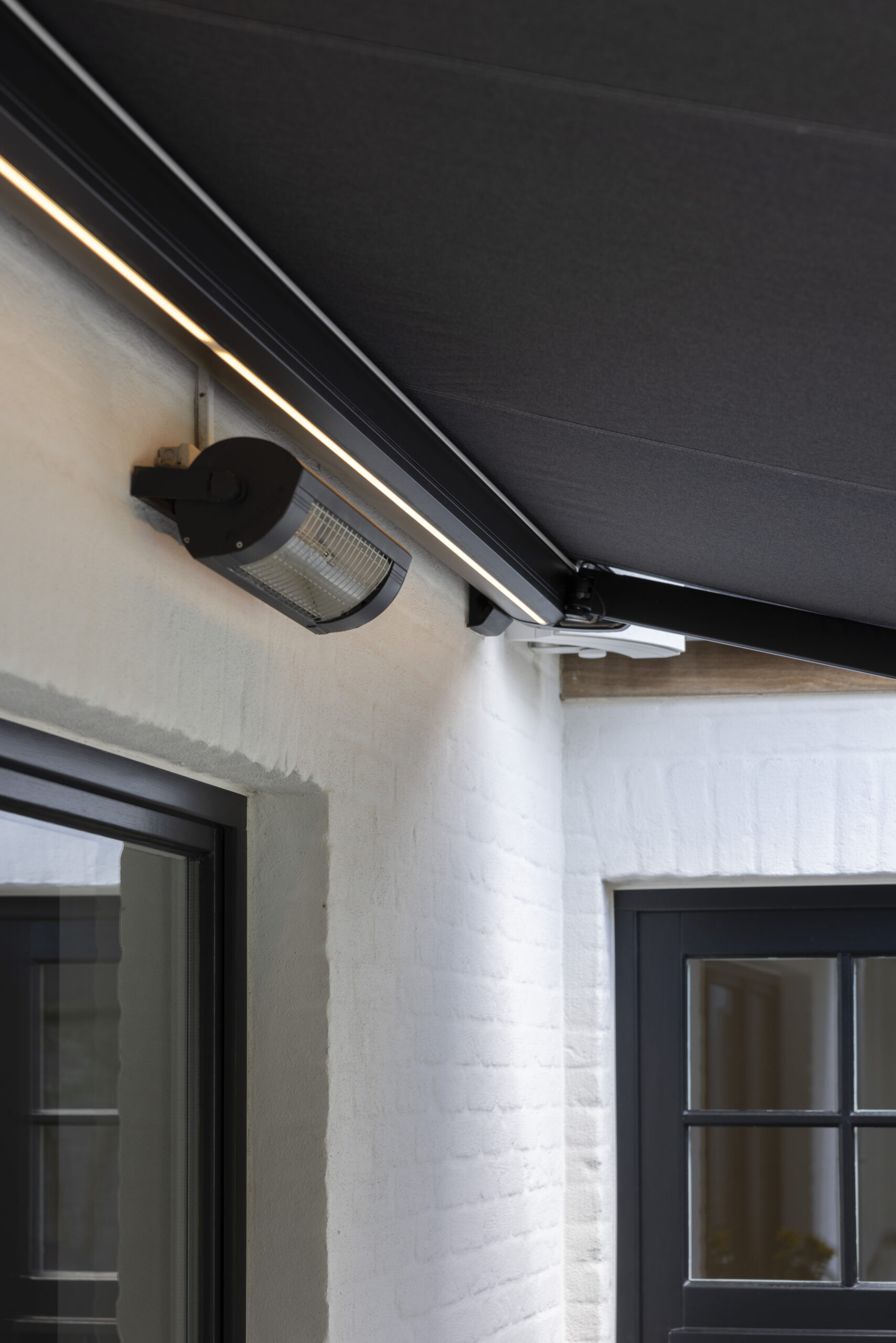 Wat de Brustor B50 onderscheidt van andere knikarmschermen is de mogelijkheid om geïntegreerde ledverlichting direct in de cassette te verwerken. Dit zorgt voor een strakke en verzorgde uitstraling, zonder extra armaturen of zichtbare kabels. Ideaal voor wie waarde hecht aan een nette afwerking en sfeervol avondgebruik.
