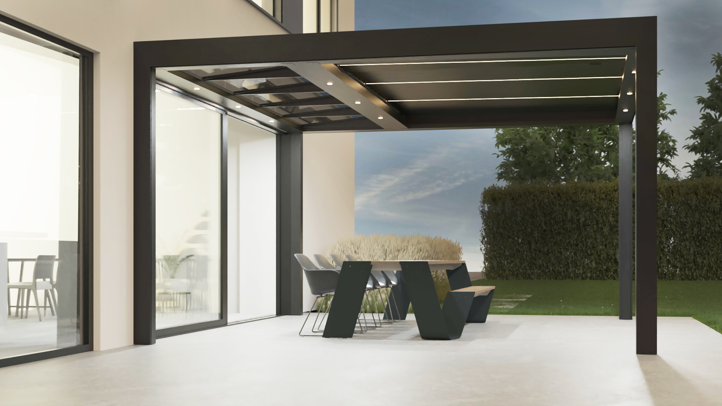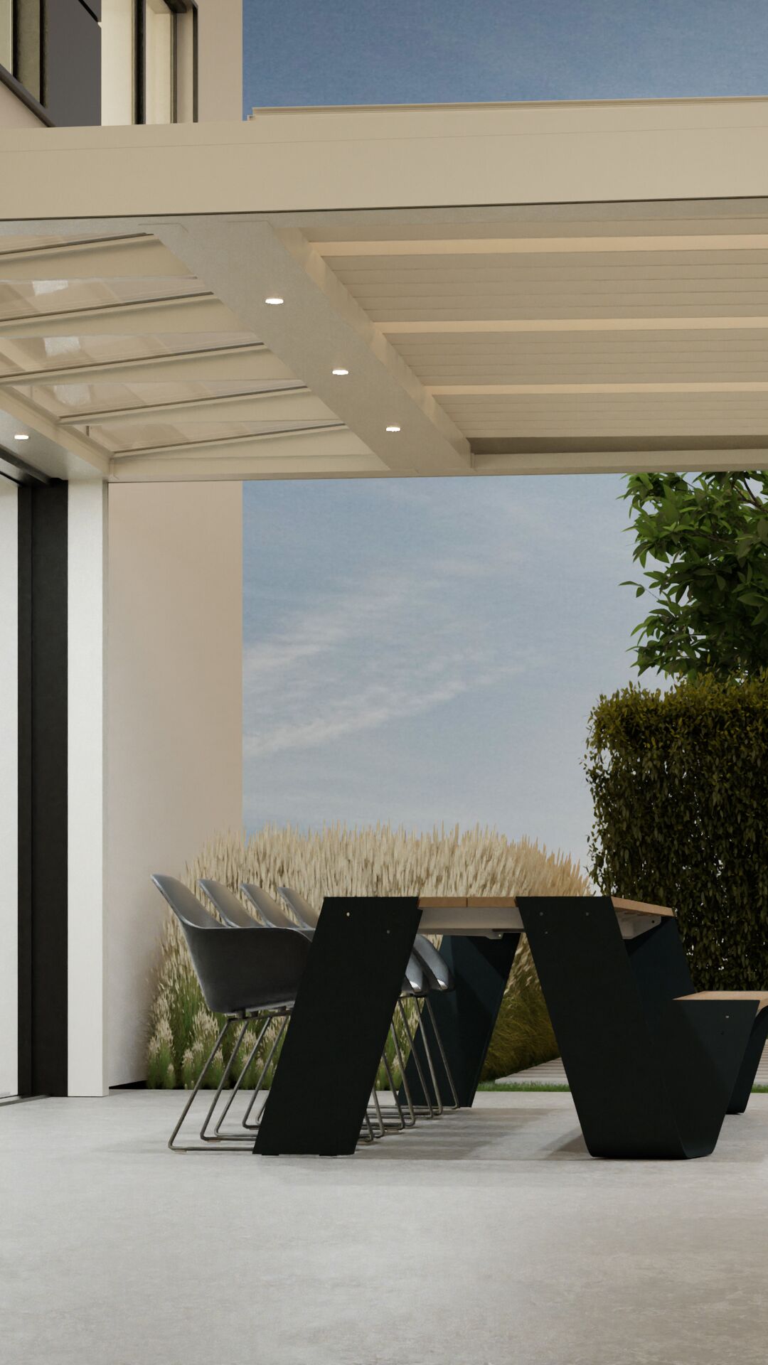 1. Lamellendak: Het lamellendak biedt flexibiliteit door de verstelbare lamellen die de hoeveelheid zonlicht en ventilatie kunnen regelen.